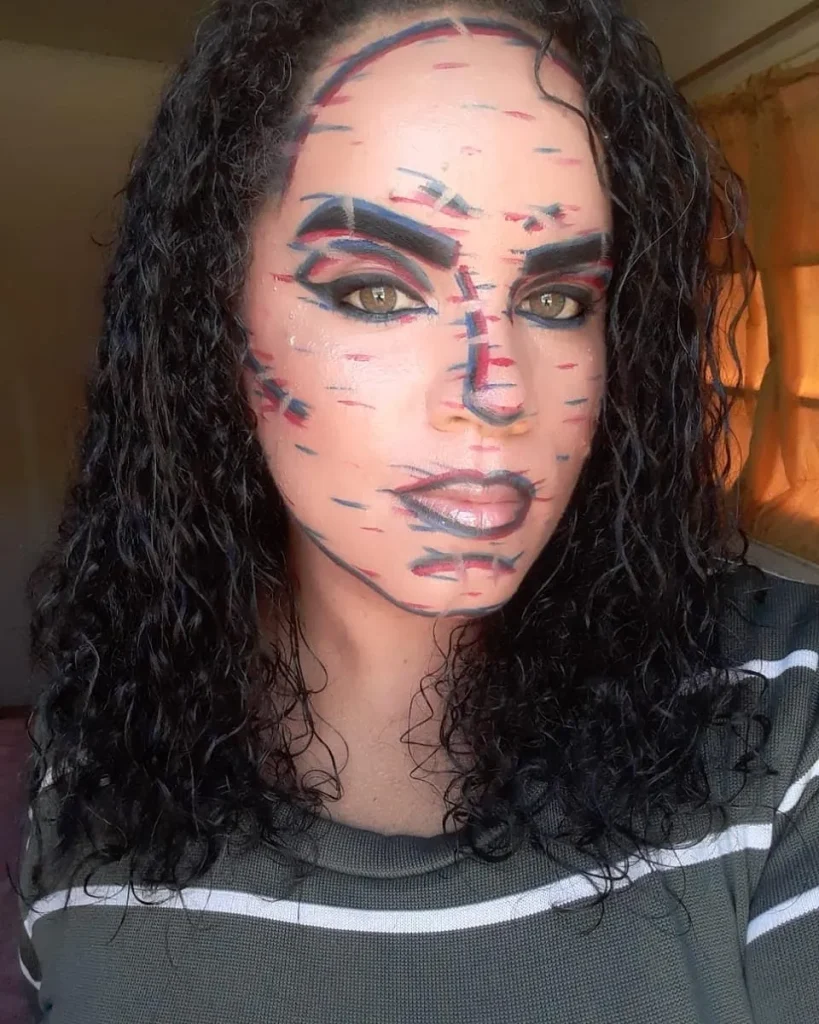 Use red and blue eyeliner or face paint to draw staggered, offset lines across parts of your face, as if your image is buffering or corrupted.