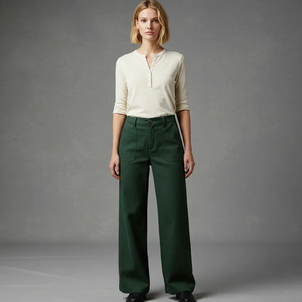 12. Wide-Leg Pants & Henley Top