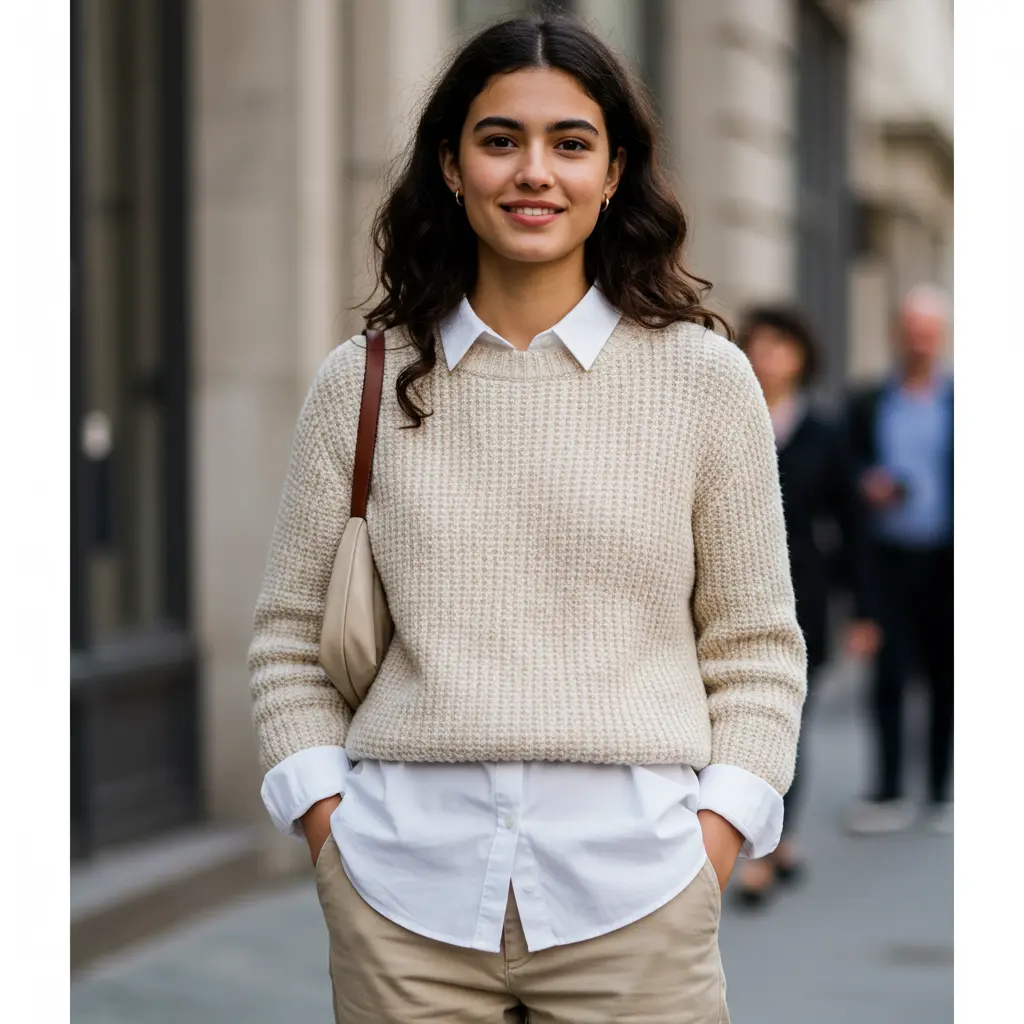 14. Knit Sweater Over a Collared Shirt with Chino Pants