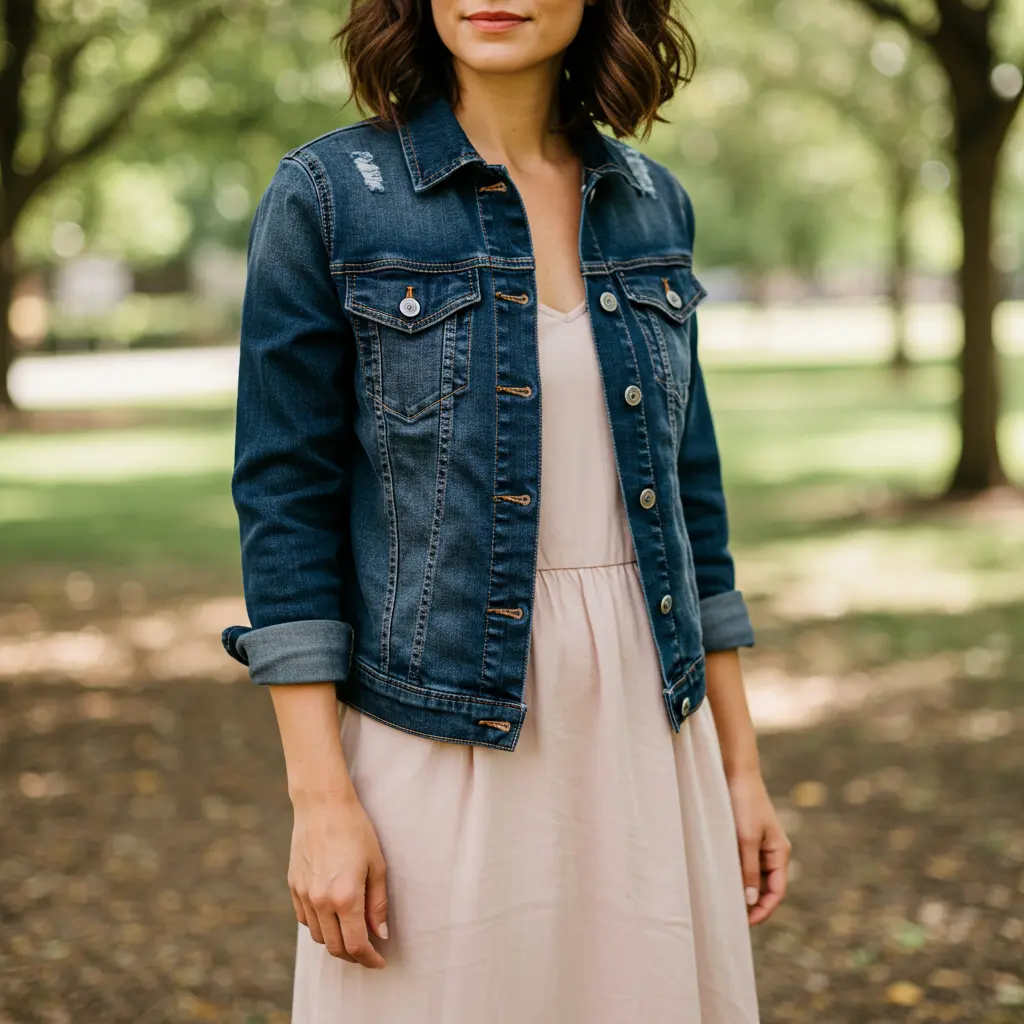 18. Denim Jacket Over a Simple A-Line Dress