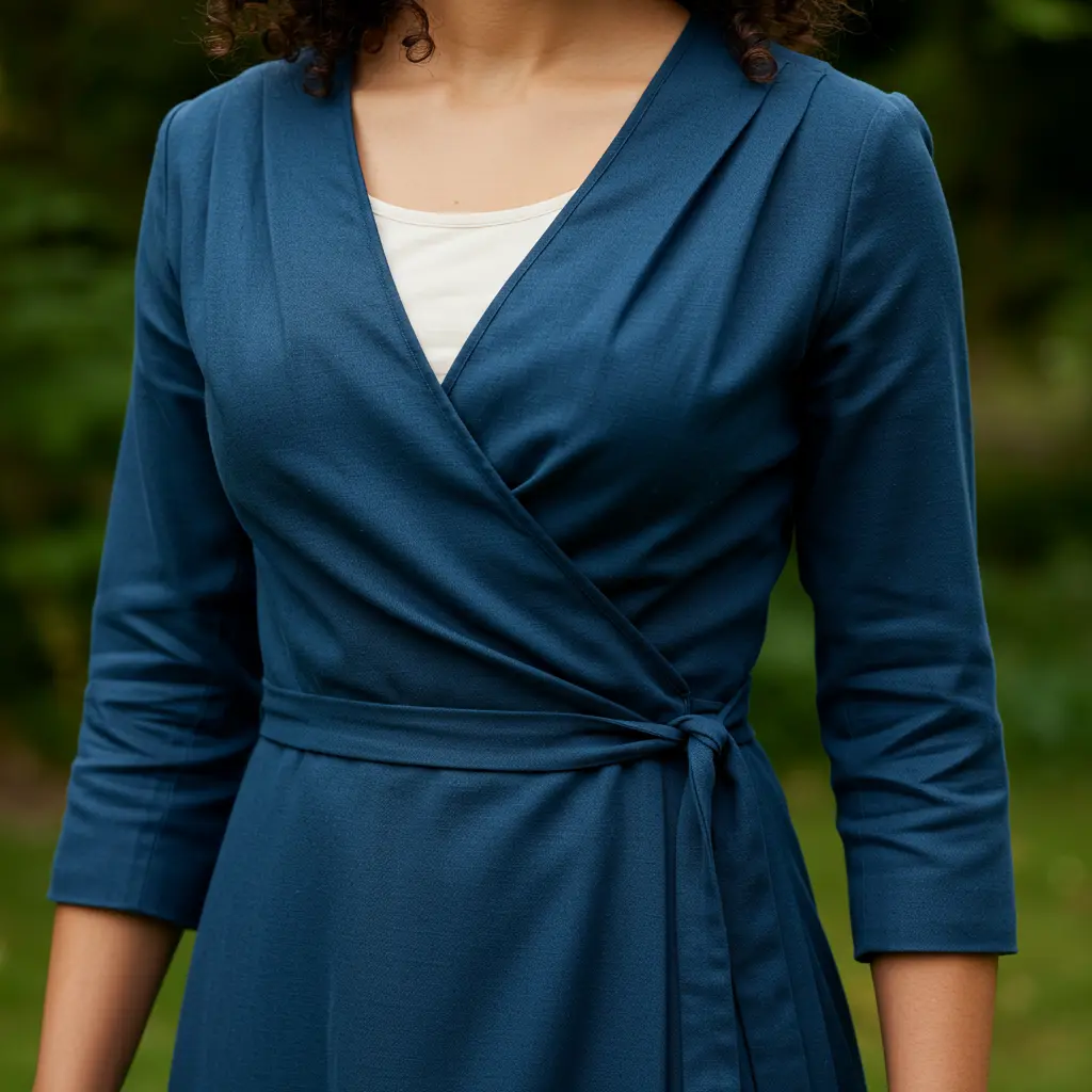 A wrap dress is comfortable and flattering. Adding a camisole ensures it stays modest.