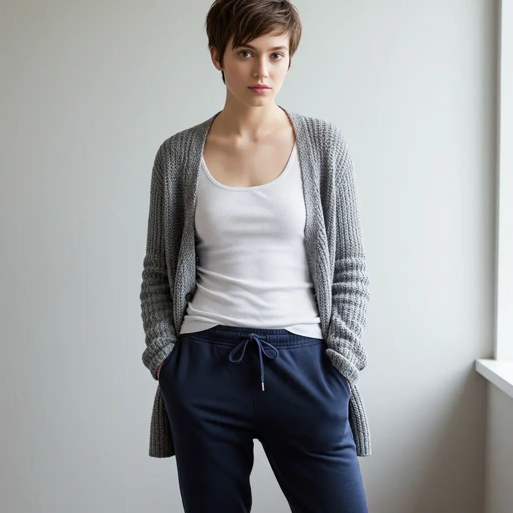 9. Layered Outfit: Tank Top, Cardigan & Comfy Pants