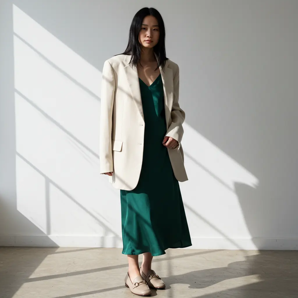 A slip dress adds a feminine touch, while the oversized blazer gives it a modern edge great for exploring museums or dining in trendy cafes.