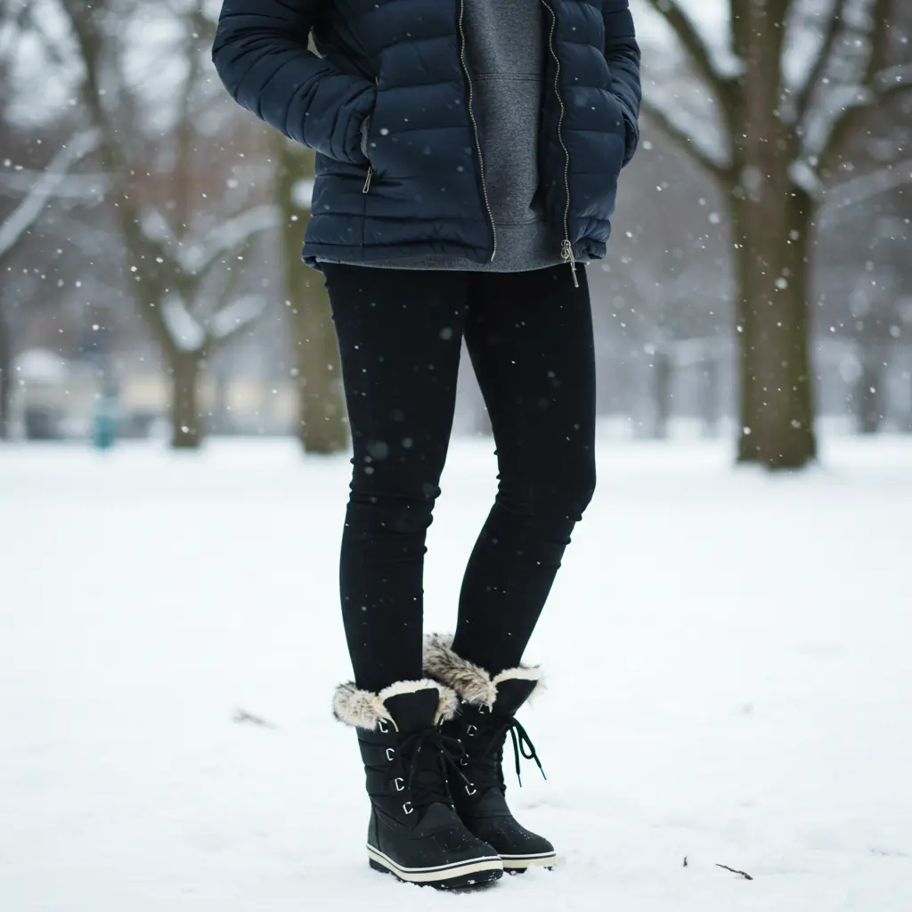 13. Puffer Jacket + Hoodie + Leggings + Snow Boots