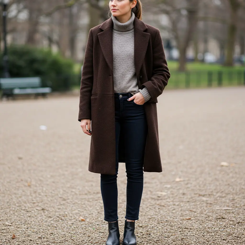 14. Wool Coat + Turtleneck + Skinny Jeans + Chelsea Boots