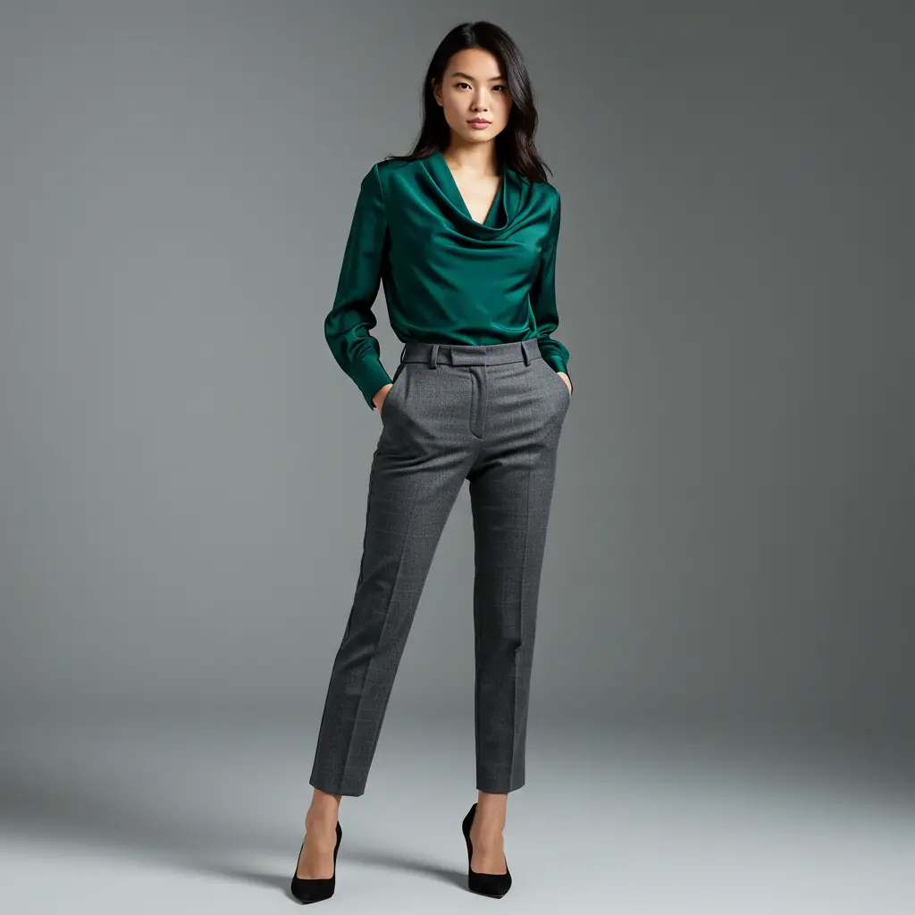 18. Silk Blouse + High-Waisted Trousers + Pumps