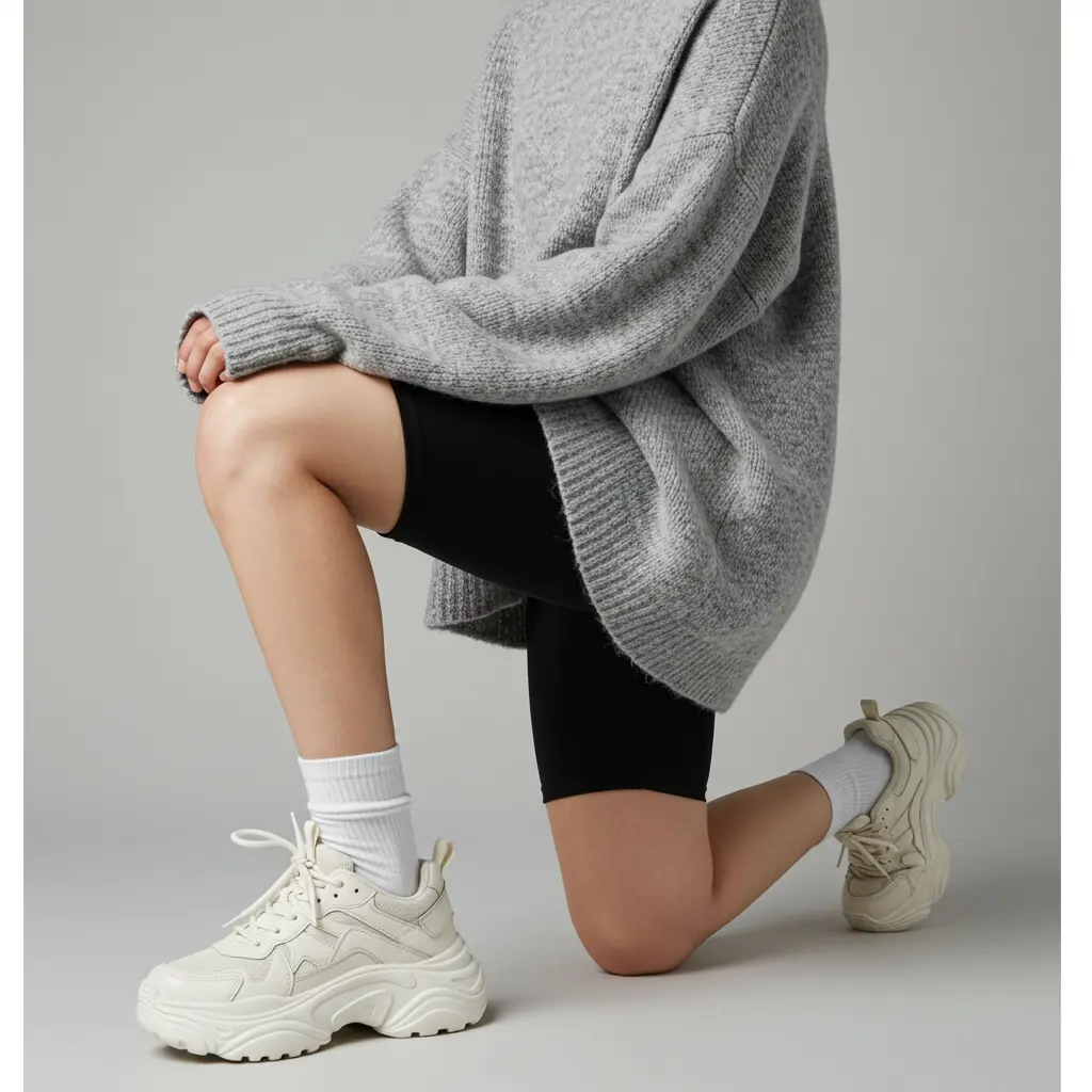 2. Oversized Sweater + Biker Shorts + Chunky Sneakers