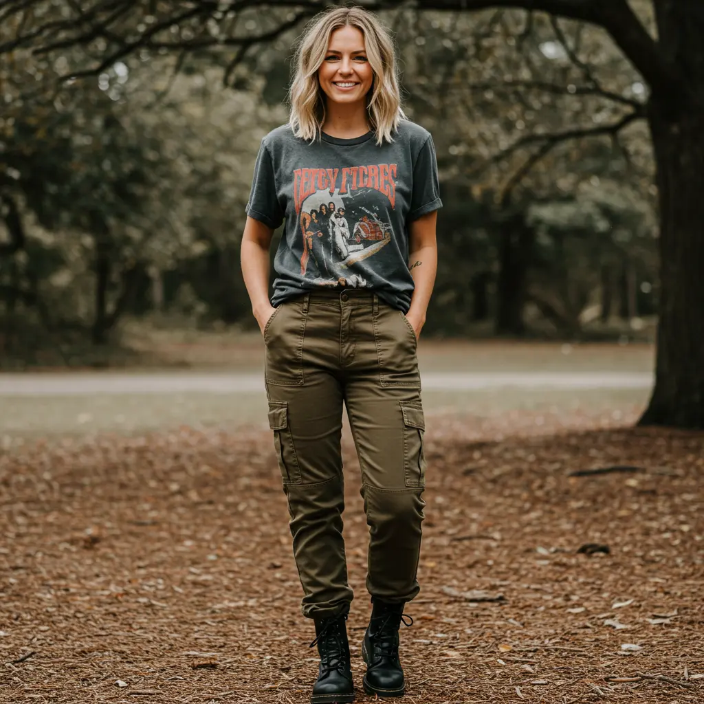 3. Graphic Tee + Cargo Pants + Combat Boots