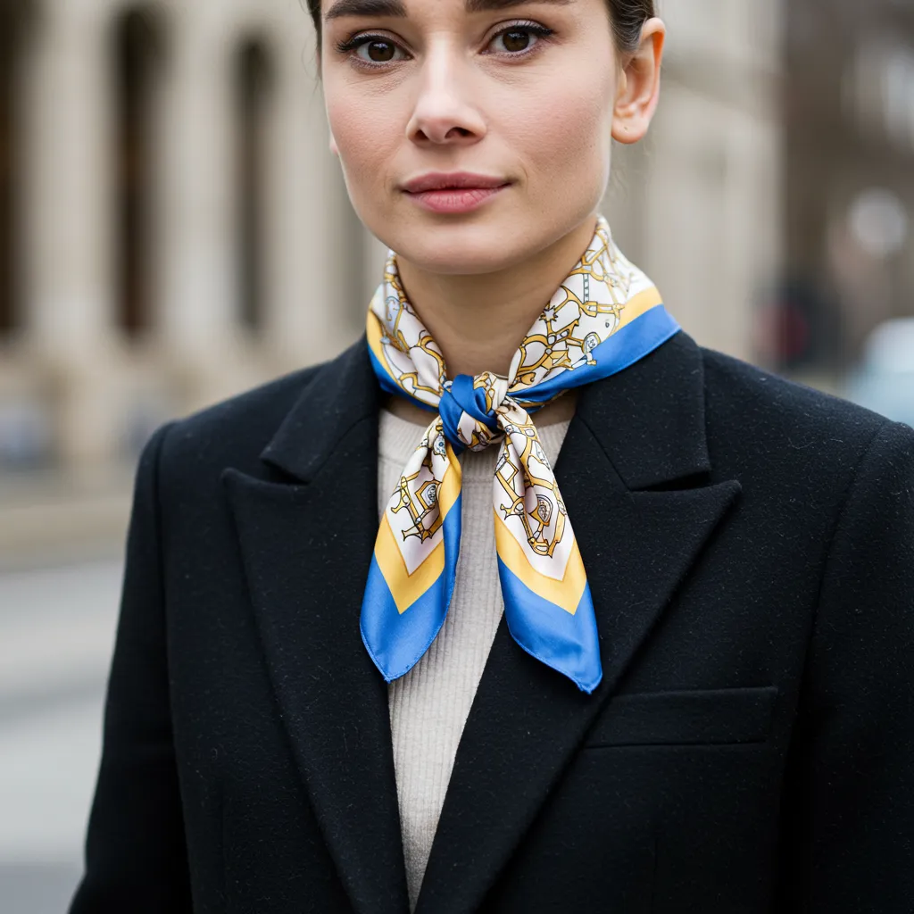 Channel your inner Audrey Hepburn with a silk scarf wear it around your neck, in your hair, or tied to your bag for a touch of sophistication.