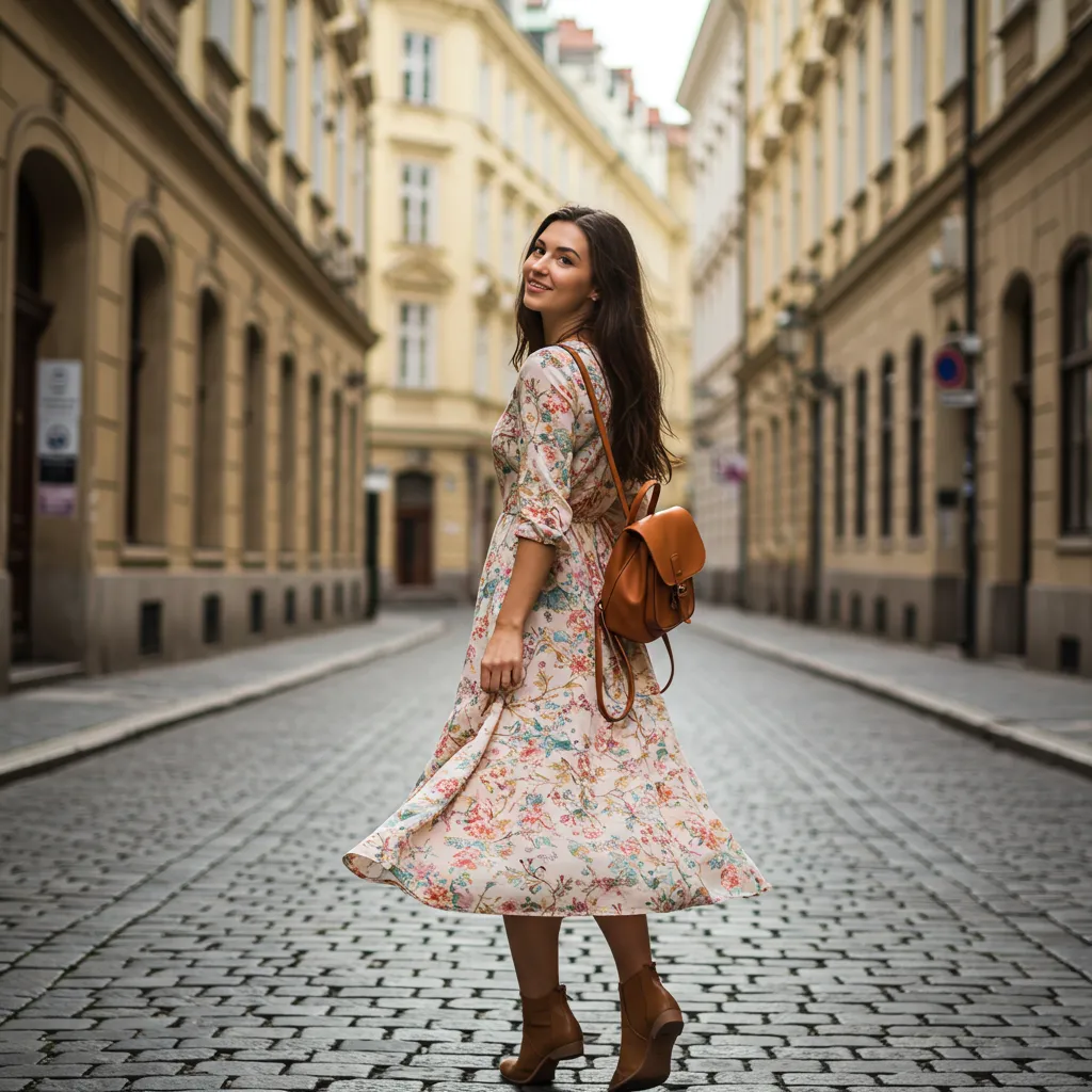 A flowy midi dress is lightweight, easy to pack, and perfect for exploring cities while staying stylish and comfortable.