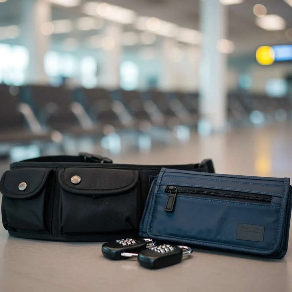 A money belt, RFID-blocking wallet, and TSA-approved locks can keep your valuables safe.