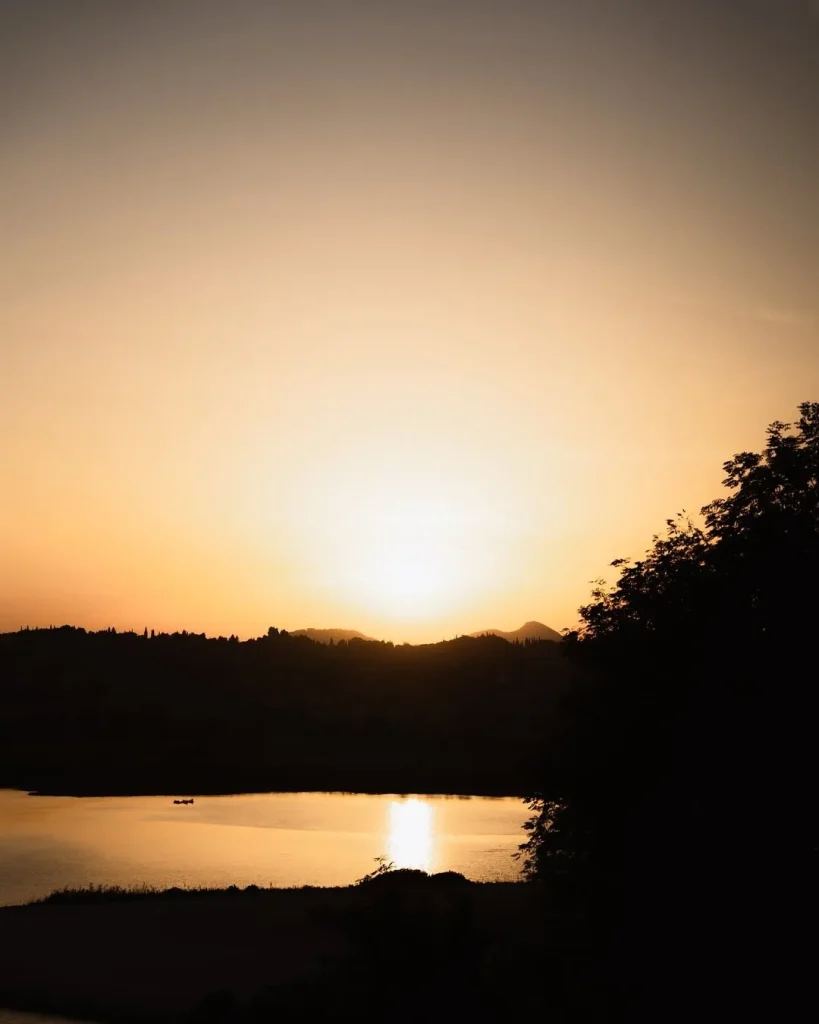 Watch the sun dip below the horizon while the sky turns pink and orange.