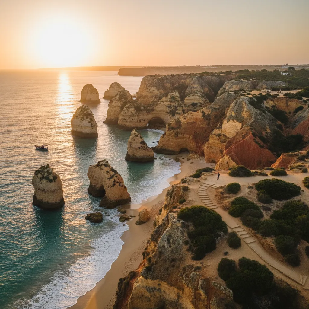 - Days 7-9: Algarve’s Golden Coast: Head south to the Algarve region, famous for its dramatic cliffs and golden beaches. Base yourself in Lagos to explore stunning spots like Ponta da Piedade and Praia do Camilo. A boat tour to the Benagil Cave is a must.
